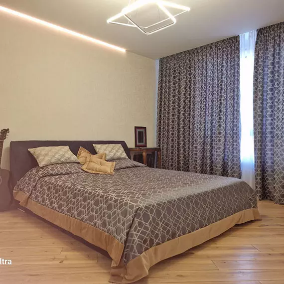 Квартира має чудовий вид з вікон, загальна площа становить 50 кв.м. Тут є гардеробна, кухня-столова та велика спальня.