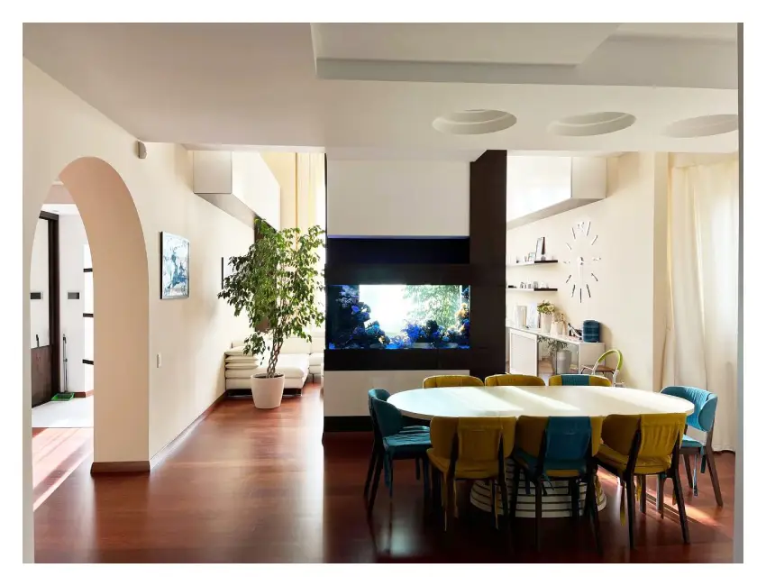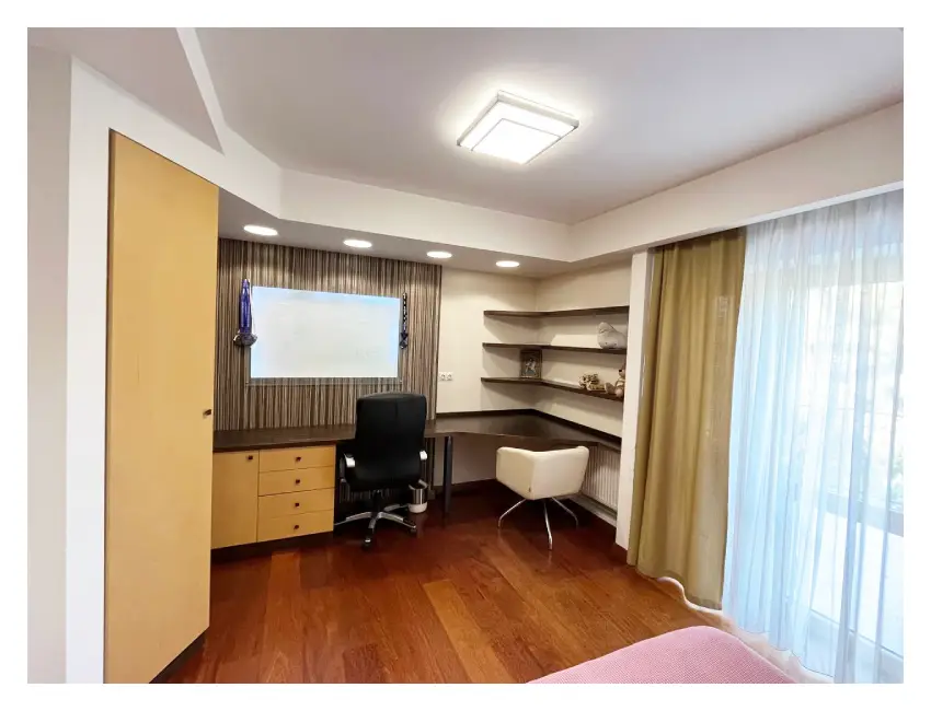 Цей котедж преміум класу Київ має загальну площу 330 м² і побудований із якісної цегли. У будинку виконано сучасний ремонт, а також встановлено систему “розумний будинок”, що забезпечує зручне керування інженерними системами. Саме тому об’єкт чудово підходить для тих, хто шукає преміум будинок в оренду Київ або оренду великого будинку Київ.