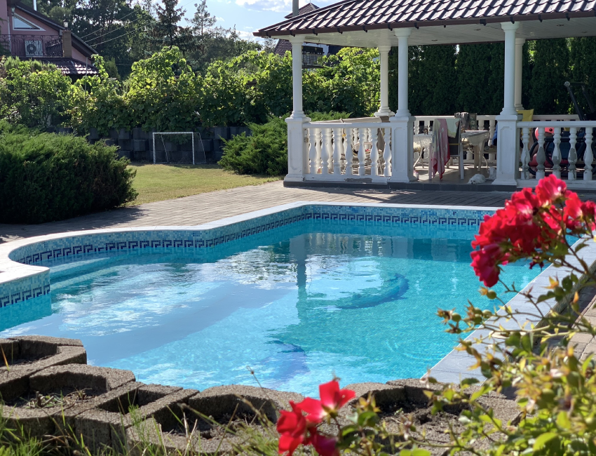 Открытая летняя терраса площадью 120 м² позволяет наслаждаться видом на природу в любое время года. На территории есть бассейн с подогревом, беседка, стационарный мангал и фонтан. Ухоженный сад с плодовыми деревьями, виноградником и более 100 кустов роз станет любимым местом отдыха 🌹.